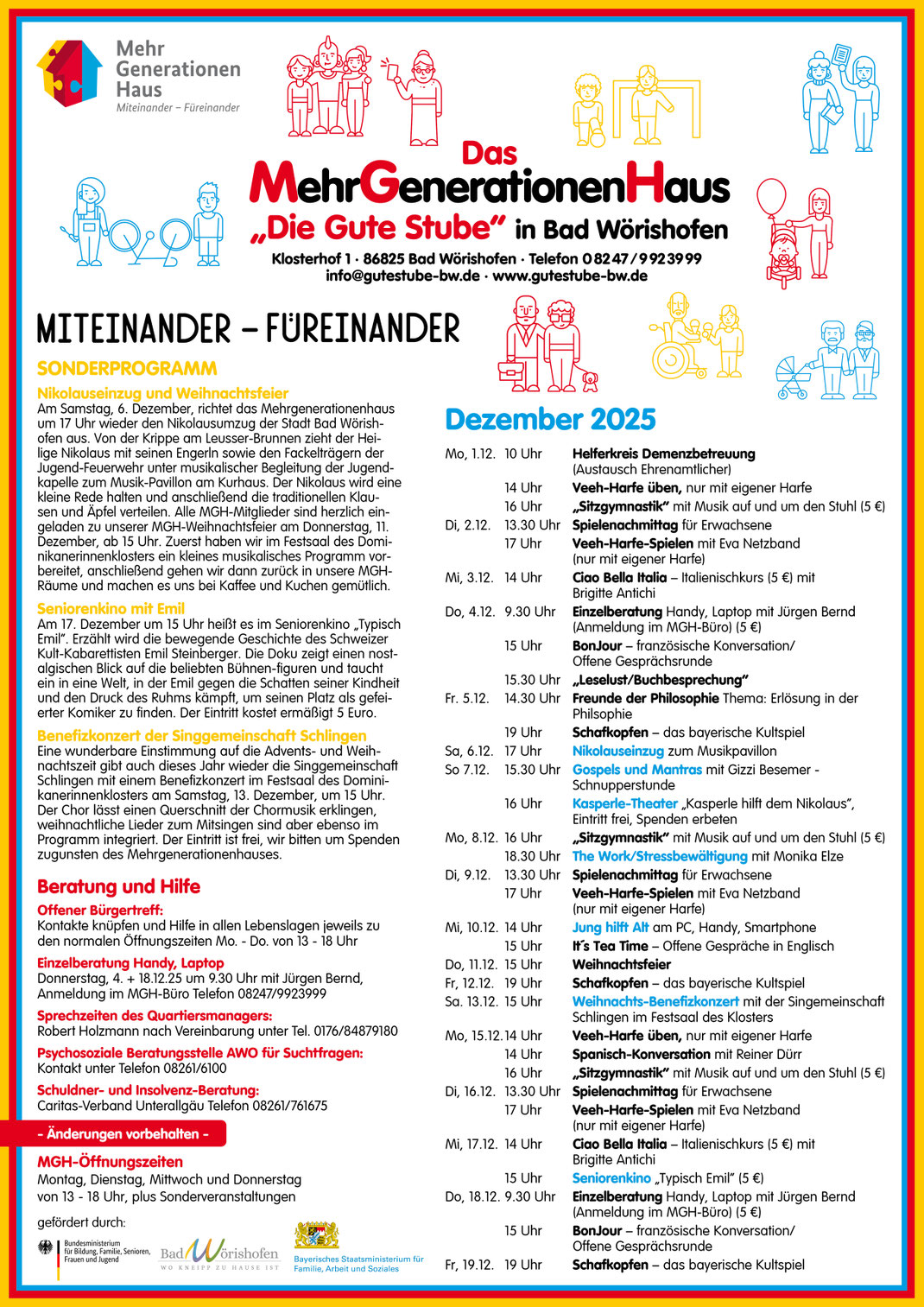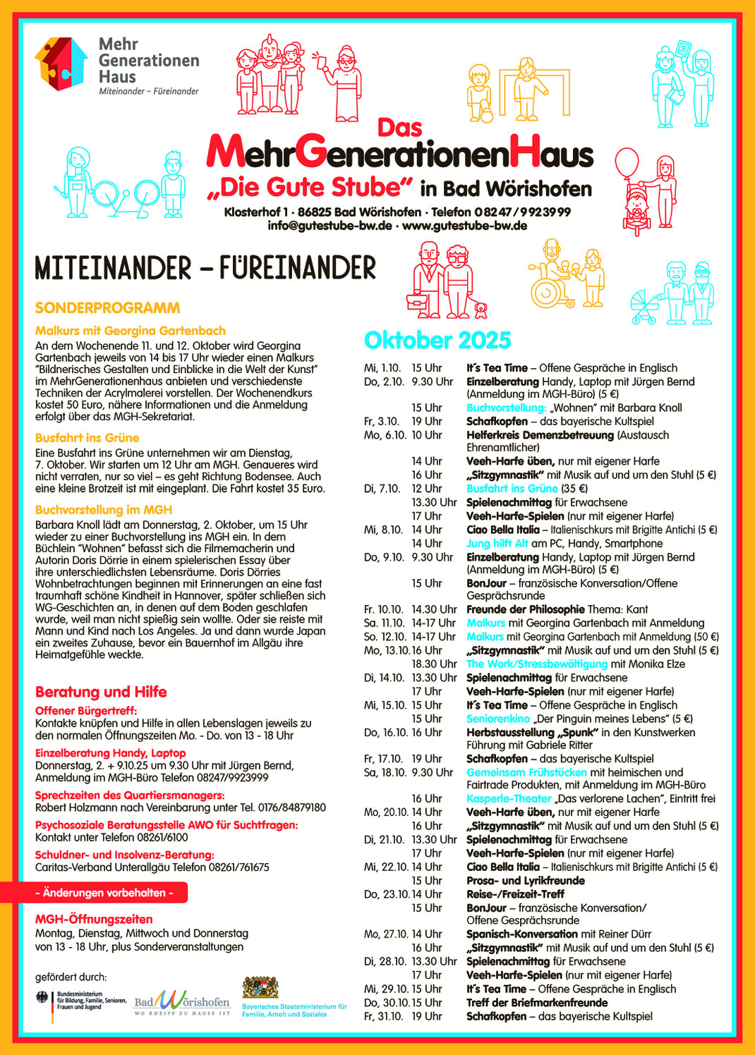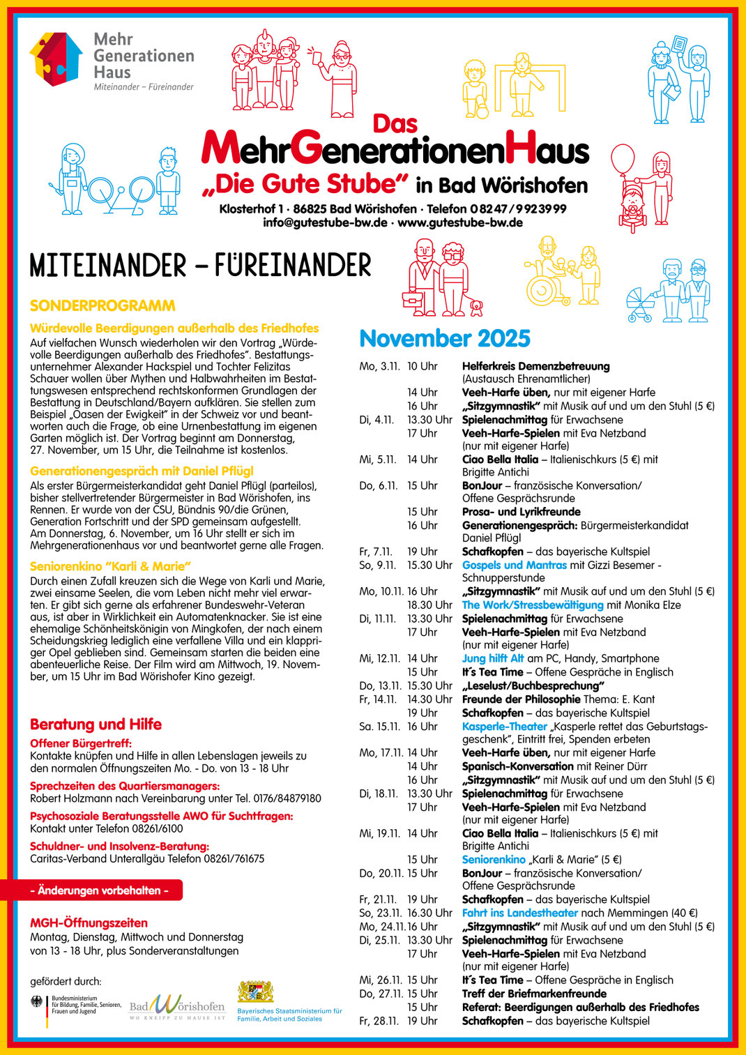 Anregung und unverzichtbar bei der Weiterentwicklung von Generationen verbindender Arbeit. "Miteinander. Füreinander. Aktiv & Engagiert" ist unsere Philosophie und unser soziales Engagement -