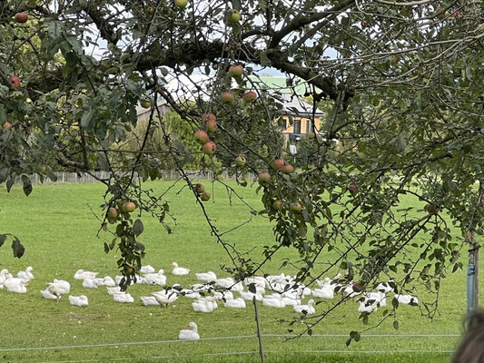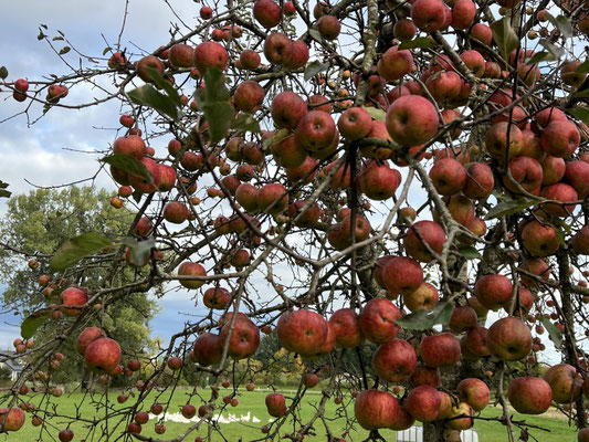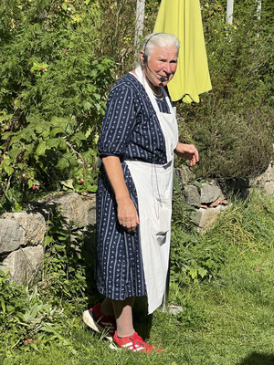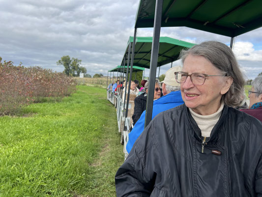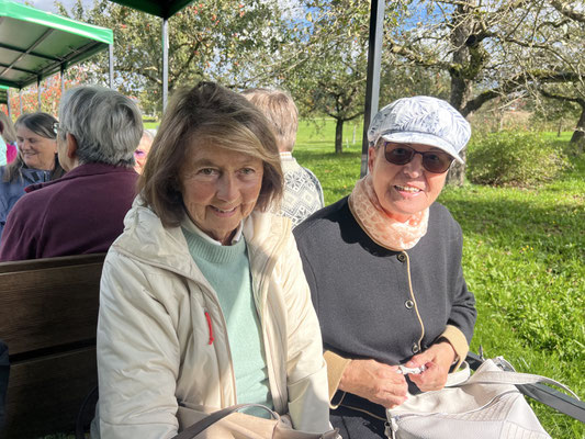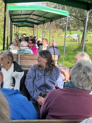 „Am Ende eines Tages ist wichtig, dass ein schöner Moment dabei war, der Dir ein Lächeln ins Gesicht gezaubert hat!“ Beim „Ausflug ins Grüne“ zum Mostbauer nach Bad Waldsee hat die große MGH-Gruppe nicht nur gelächelt, sondern ausgiebig und oft gelacht bei vielen schönen Momenten. Dazu beigetragen hat nicht zuletzt die Oma sprich 1.Magd des Hauses, die das Mostbähnle durch die Gegend fuhr und alle in ihrer ganz eigenen Art über die biologische Landwirtschaft insbesondere ihren eigenen Bsuerngarten, die Streuobstwiesen und den Aroniaanbau aufklärte. Bei einer zünftigen Vesper untermalt von Akkordeon-Musik Klang ein rundum lustiger Nachmittag aus.