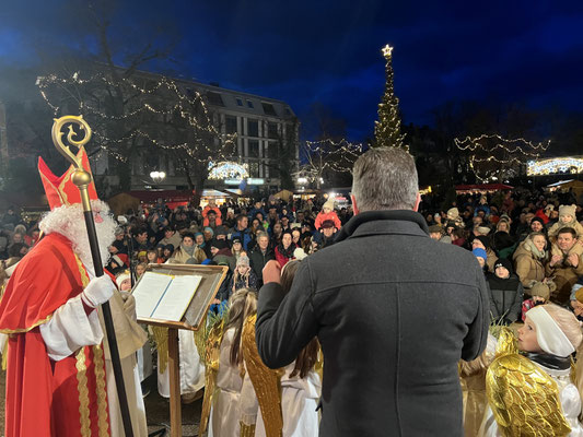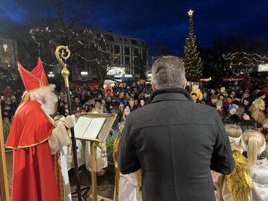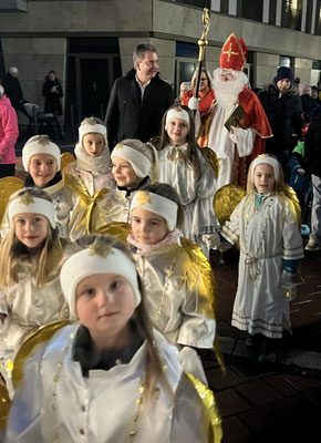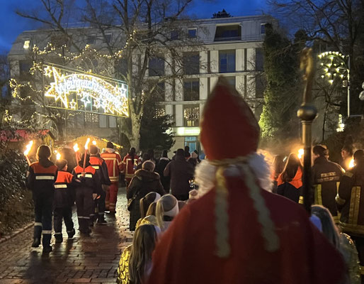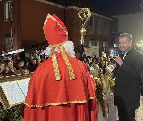 Der traditionelle Nikolauseinzug der Stadt Wörishofen, den jedes Jahr das Mehrgenerationenhaus organisiert, läutete den Weihnachtsmarkt in der Kurstadt ein. Bürgermeister Stefan Welzel dankte den vielen helfenden Händen, den Mitwirkenden, allen voran dem Nikolaus, den Sponsoren und nicht zuletzt auch den fleißigen Bäckern, die auch heuer wieder 500 Hefeklausen gefertigt hatten. Zusammen mit einem Apfel gab es diese für die zahlreichen Besucher. Der Dank geht zudem an die Jugendfeuerwehr, die mit Fackeln den Einzug flankierte und die feierliche, musikalische Umrahmung durch die städtische Irmgard Seefried Musikschule.