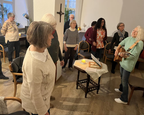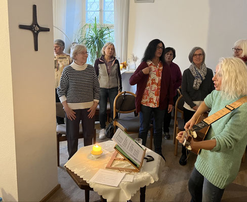 Sehr gut angenommen wurde die erste Mantra- und Gospel-Schnupperstunde im Mehrgenerationenhaus. Gizzi Besemer verstand es die Teilnehmer zu motivieren ohne Leistungsdruck mitzusingen. Ob beschwingte Gospels oder heilsame Mantras alle Teilnehmer waren begeistert und gingen beschwingt und mit einem Lächeln nach Hause. Die nächste Schnupperstunde findet am Sonntag, 7. Dezember, um 15.30 Uhr im Mehrgenerationenhaus statt. Ab Januar findet das Mantra- und Gospelsingen dann einen festen Platz im MGH-Programm.