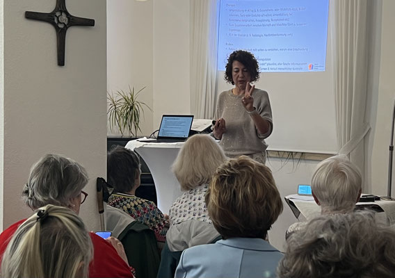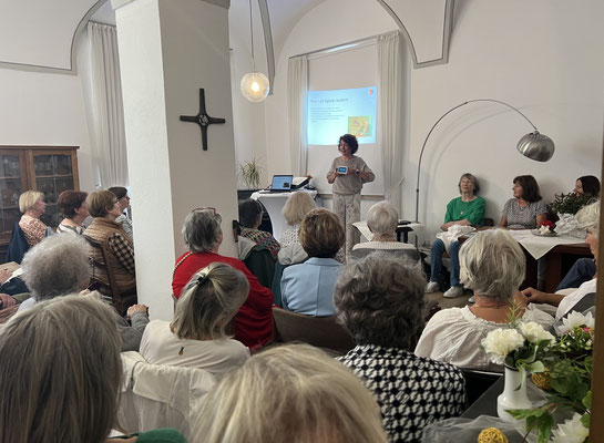Ein Heimspiel hatte Birgit Holetschek, ihr Mann Klaus war viele Jahre Bürgermeister in Bad Wörishofen und ist heute Fraktionsvorsitzender der CSU im Bayerischen Landtag, bei ihrem Vortrag über Künstliche Intelligenz im Mehrgenerationenhaus. KI ist ihr Steckenpferd seit vielen Jahren und so war es für sie kein Problem über die Vor- und Nachteile Auskünfte zu erteilen, sondern eher die Frage im breiten Informationsspektrum „wo anfangen und wo aufhören“. Wir bedanken uns bei ihr und „Alexa“😜 für ihr ehrenamtliches Engagement der Wissensvermittlung. Das Interesse war so groß, dass einige Teilnehmer sogar am Gang Platz genommen hatten.
