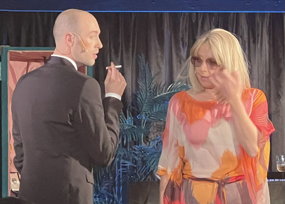 „Toller Theaterabend“, „herausragende Dialoge und gute Auswahl der Knef-Chansons“, einmalig feinfühlige Live-Klavierbegleitung“ - so oder ähnlich lauteten die durchwegs positiven Kritiken der 50 MGHler, die das musikalische Kammerspiel „der Teufel und die Diva“ im Landestheater Schwaben besuchten. In einem unwirklichen Zwischenreich versucht der liebenswürdige Mephisto (Joscha Schönhaus) Hildegard Knef (Cindy Walther) kurz nach ihrem Tod in sein Reich zu locken. Dabei lässt er ihr Leben mit vielen Höhen und Tiefen Revue passieren. Die Diva begegnet dem Teufel charmant, widerspenstig, aber immer mit Haltung und Zigarette. Zum 100. Geburtstag von Hildegard Knef eine gelungene Bühnenshow getragen durch die die musikalische Leitung und die Live-Pianobegleitung von Murat Parlok.