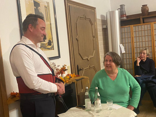 Auf großes Interesse stieß im Mehrgenerationenhaus die Buchvorstellung „Thomas Mann macht Ferien“, die Koordinatorin Barbara Knoll zusammengestellt hatte. Kleine Leseproben aus dem Buch, allgemeine Geschichten über die wohl bekannteste deutsche Literatur-Familie Mann und Informationen über die Buchautorin Kerstin Holzer machten die zahlreichen Gäste neugierig auf die Sommeridylle 1918 am Tegernsee. Da sich heuer ja der 150. Geburtstag des Nobelpreisträgers gejährt hat, er ist am 6. Juni 1875 in Lübeck geboren, durfte der Geburtstagskuchen im MGH natürlich abschließend nicht fehlen.
