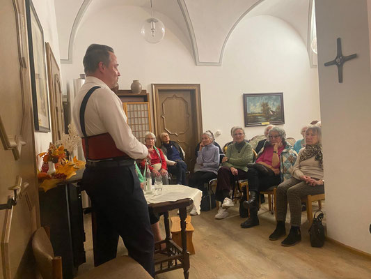 Der Busausflug im Monat Oktober führte uns ins Buchheim-Museum an den Starnberger See. Wir besuchten die Sonderausstellung „Karl Valentin und die Musik“, aber auch die die Rahmen und Bilderschau „Wiederentdeckt & Wiedervereint“ von Ernst Ludwig Kirchner beeindruckte die kunstinteressierten Seniorinnen und Senioren sehr. In den Wohnräumen von Lothar-Günther Buchheim zeigte sich seine enorme Sammelleidenschaft. Nicht zuletzt ist die Lage des Museums direkt am See einzigartig und das besonders an einen so goldenen Herbsttag. In der so genannten „blauen Stunde“ kurz nach Sonnenuntergang,die Kirchner so geliebt und oft gemalt hat, ging es dann wieder Richtung Heimat.